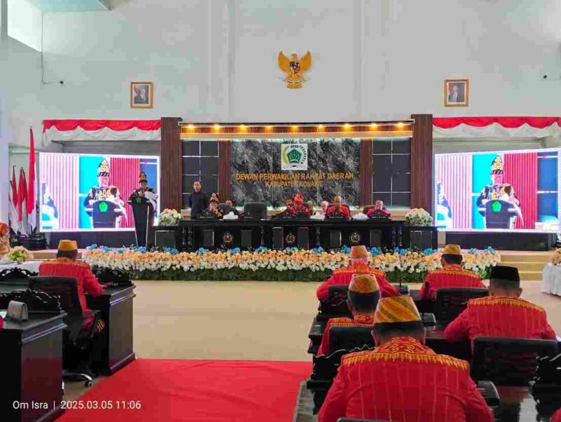 BARADUPA.COM – KONAWE. Dewan Perwakilan Rakyat Daerah (DPRD) Kabupaten Konawe, Sulawesi Tenggara (Sultra) menggelar Rapat Paripurna Istimewa Peringatan Hari Ulang Tahun (HUT) ke-65 kabupaten Konawe, Rabu (05/03/2025).
