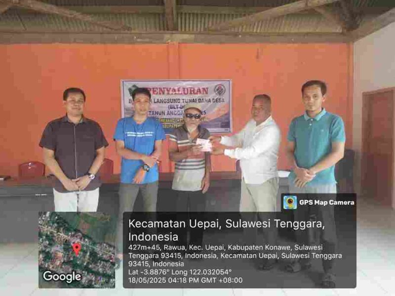 BARADUPA.COM – KONAWE. Pemerintah Desa Tamesandi, Kecamatan Uepai, Kabupaten Konawe menyalurkan Bantuan Langsung Tunai Dana Desa (BLT DD) tahap I 2025 kepada warga setempat. Penyaluran BLT ini berlangsung di Balai Desa Tamesandi pada Minggu, 18 Mei 2025.